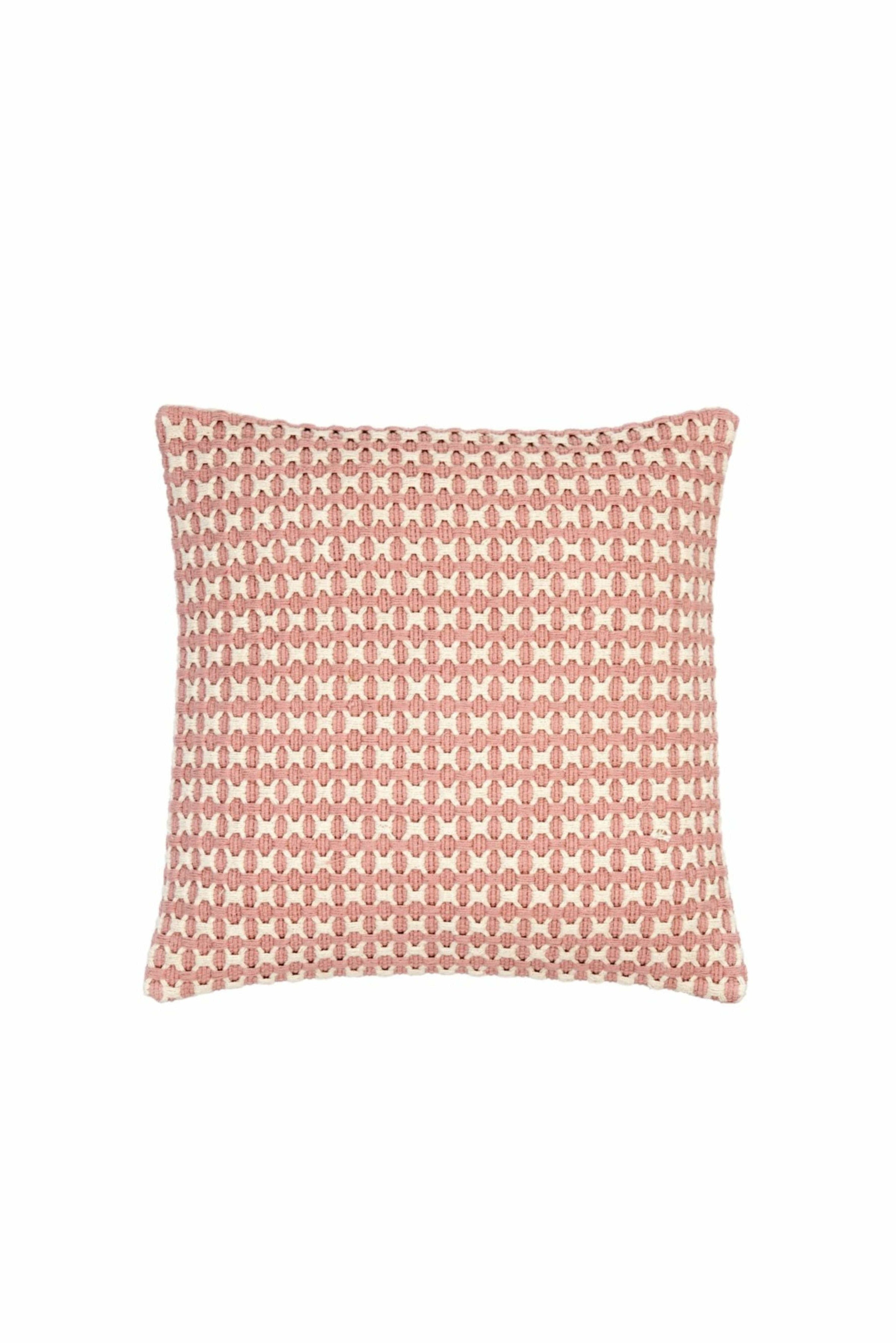 The woven texture and soft blush color is a wonderful combo on this lovely cotton pillow! The back of the pillow is cream.
